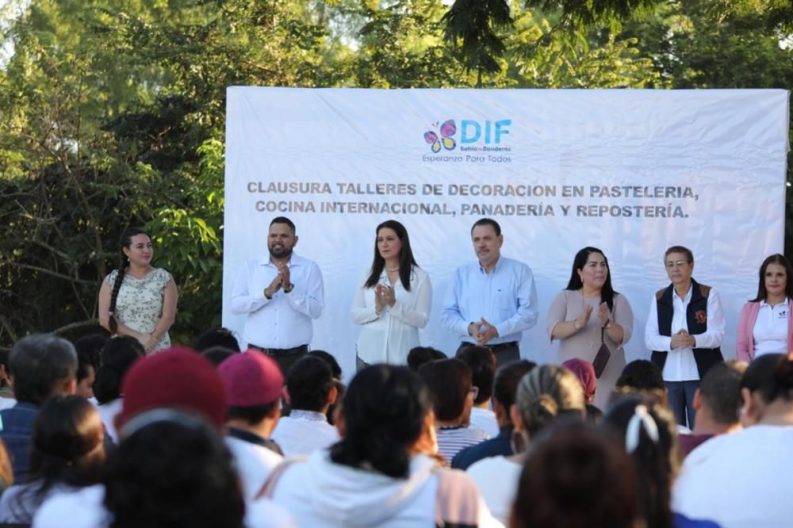 “Al inicio del curso se inscribieron 100 personas, hoy se gradúan 75, quiero felicitarlos por ser constantes, me da gusto ver en redes sociales que algunas de ustedes ya venden pasteles y galletas; lo que hacemos en DIF es proporcionarles herramientas a hombres y mujeres para que se empoderen y crezcan, algunas personas tienen profesión, pero en su tiempo libre aprovechan esta oportunidad para tener una fuente de ingresos extra. De nueva cuenta muchas felicidades por su perseverancia y  ya dependerá de ustedes el seguir preparándose en lo que quieran ser”, expresó la titular del Sistema Municipal DIF.