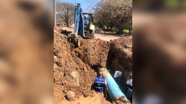 El departamento de Distribución de Agua Potable, realizó las maniobras correspondientes en el tramo fisurado de la tubería de 24 pulgadas de diámetro, esto en el camino al Campo de Golf.