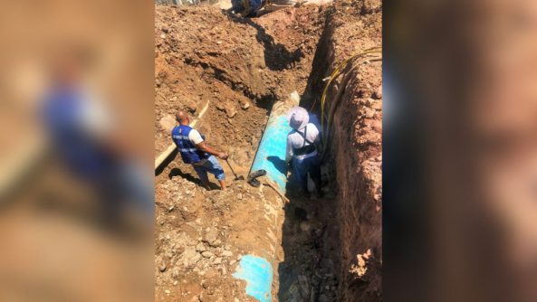 El departamento de Distribución de Agua Potable, realizó las maniobras correspondientes en el tramo fisurado de la tubería de 24 pulgadas de diámetro, esto en el camino al Campo de Golf.
