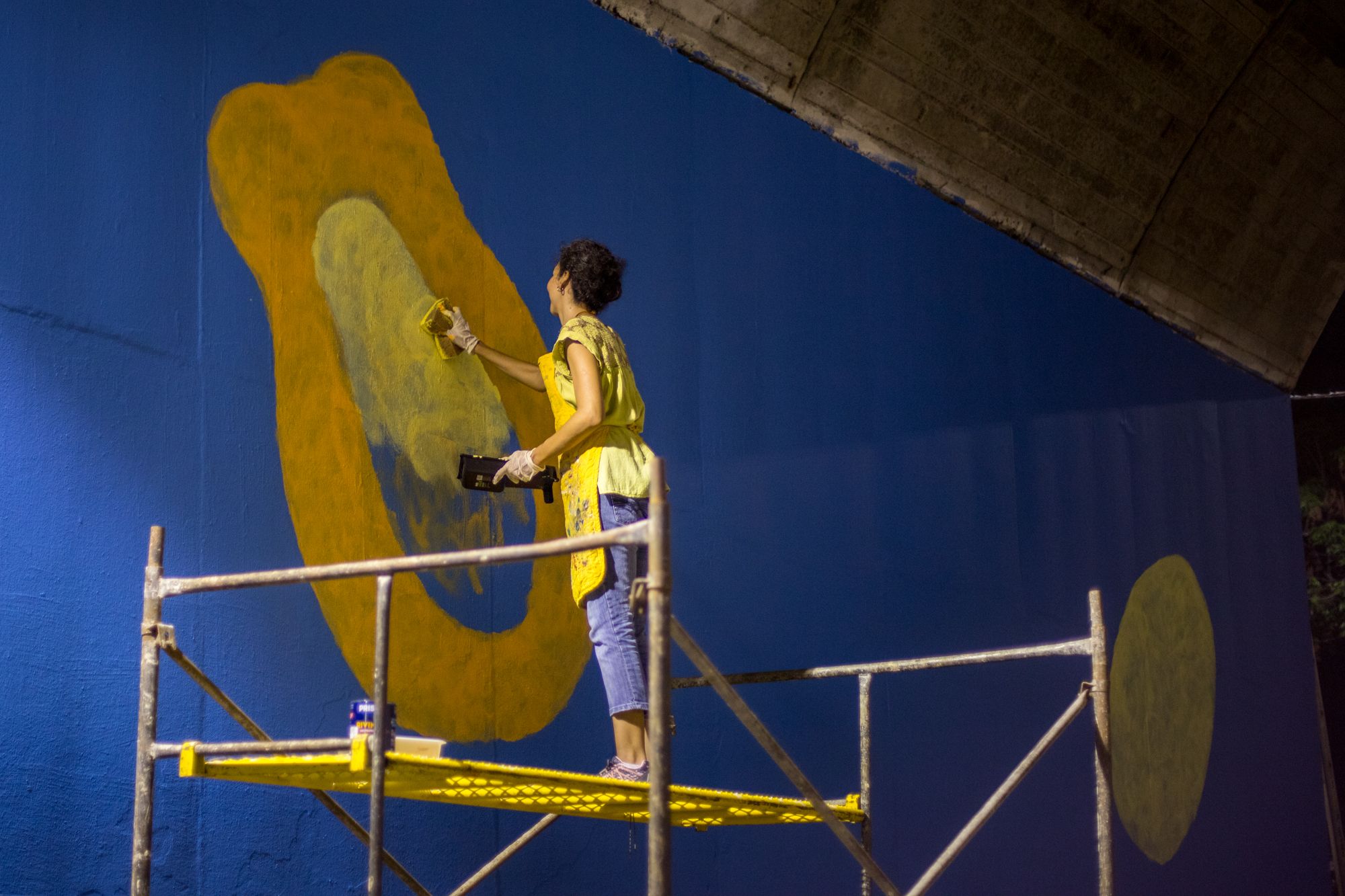 El flujo constante de vehículos por esta vialidad obligó a la artista a trabajar durante la madrugada. Para facilitar su labor fue fundamental el apoyo de otras dependencias municipales, tales como las direcciones de Seguridad Ciudadana, Servicios Públicos y Mantenimiento de Bienes e Intendencia, así como de la subdirección de Vialidad y las jefaturas de Mercados y Alumbrado Público.
