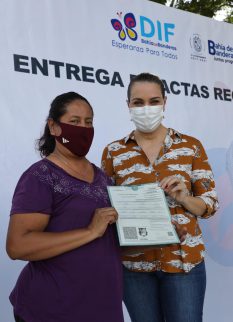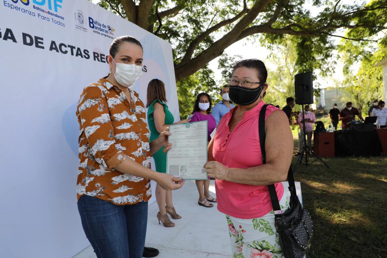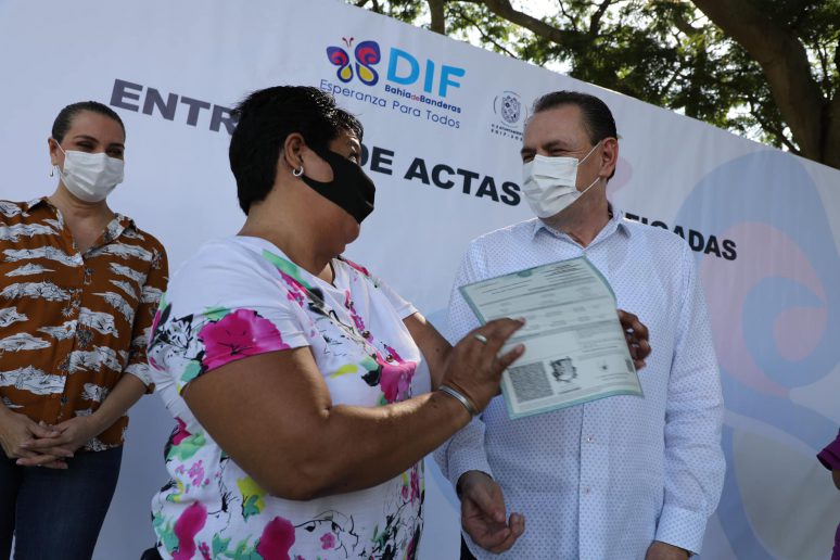 Como parte de la exitosa campaña de Actas Rectificadas que promovió el Gobierno Municipal de Bahía de Banderas, el Alcalde Jaime Cuevas y su esposa la LTS Ana Esperanza Berumen de Cuevas, presidenta del Sistema DIF, hicieron la entrega de Actas de Nacimiento, Matrimonio, Divorcio y Defunción a vecinos de distintas comunidades del Municipio. Documentos que fueron corregidos brindando certeza jurídica a sus titulares.