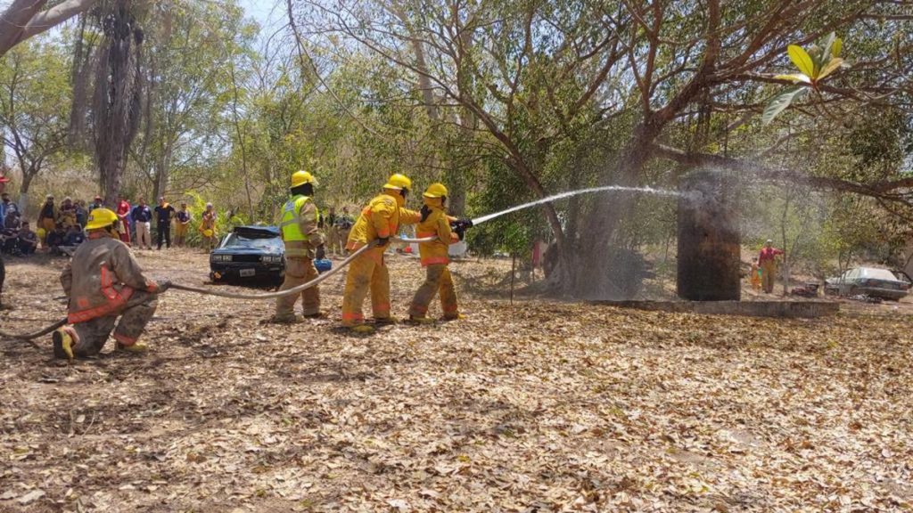 Durante el cierre del curso, los bomberos aplicaron sus técnicas y habilidades adquiridas en diferentes escenarios, sobre el manejo de materiales peligrosos, formas de abastecer agua, comportamiento del fuego, búsqueda y rescate y extracción vehicular