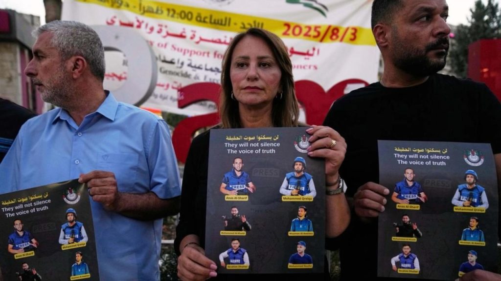 Gaza. El asesinato del destacado periodista de Al Jazeera, Anas al Sharif, junto con cuatro colegas en un ataque aéreo israelí el domingo, provocó la condena de la comunidad internacional. En el centro de la franja de Gaza, cientos de dolientes participaron en sus funerales.