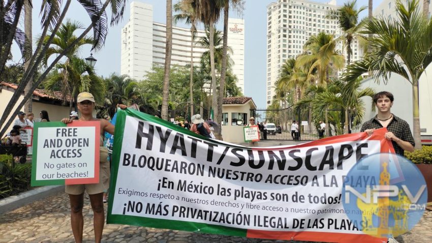 La protesta se llevó a cabo en la intersección de las avenidas Francisco Medina Ascencio y Fluvial Vallarta, donde también se sumaron habitantes de Puerto Vallarta que han enfrentado dificultades similares para acceder a la playa Holly, cuyo ingreso —afirman— fue cerrado por el hotel.