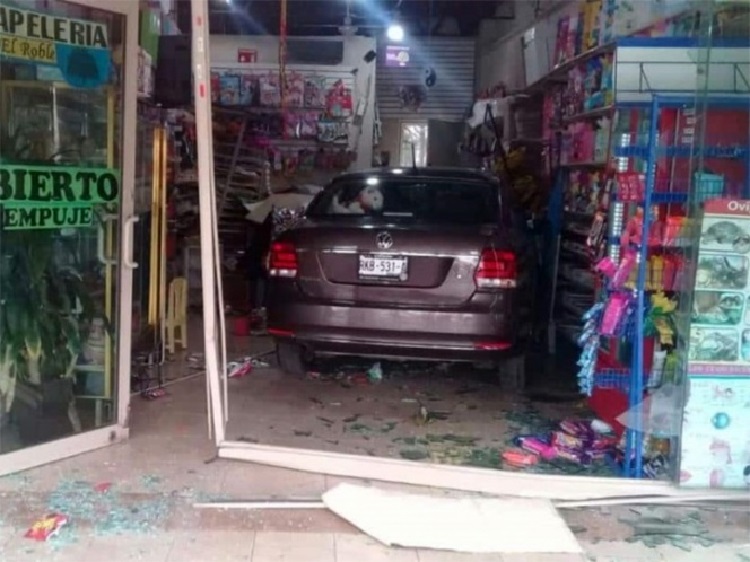 Al llegar a la plaza comercial una mujer entró con todo y su auto a una papelería, esto luego de confundir el freno con el acelerador.