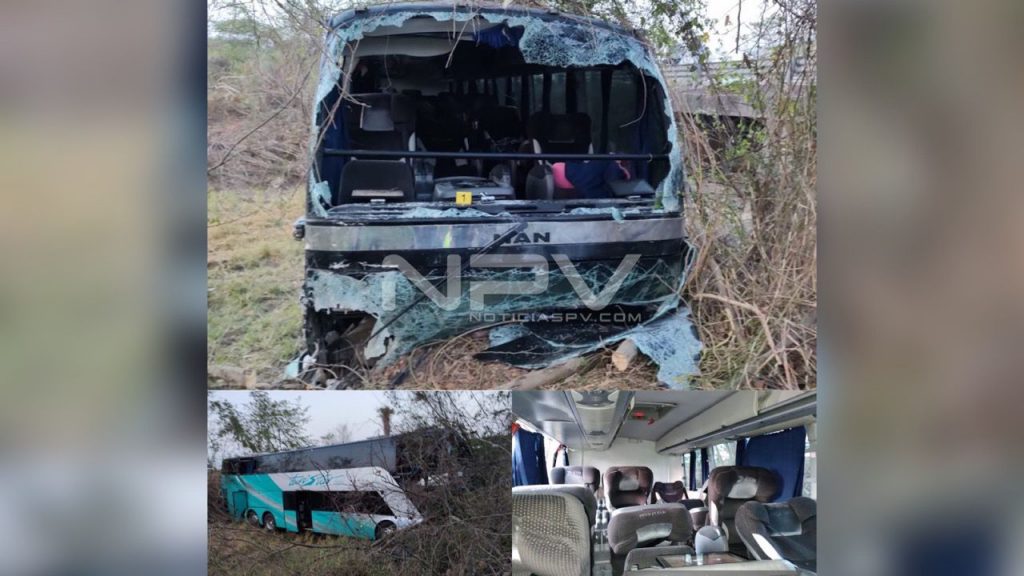 Lo anterior, a la altura del kilómetro 102+950 sobre la autopista Tepic-Villa Unión, quedando en el lugar una persona sin vida y once pasajeros más lesionados, mismos que fueron trasladados -después de recibir la atención médica- a diversos hospitales de la capital del estado.