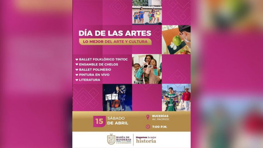 Bahía de Banderas Nay., a 14 de abril de 2023.- El próximo sábado 15 de abril se celebrará el Día Mundial del Arte, fecha que tiene el objetivo de promover el desarrollo, la difusión y la promoción del arte. Por ello el XI Ayuntamiento de Bahía de Banderas a través del Instituto de Arte y Cultura realiza un evento mostrando en el escenario artistas locales que son parte de los ensambles, talleres y variada oferta cultural que esta XI Administración que preside Mirtha Villalvazo Amaya, ha impulsado desde su inicio.