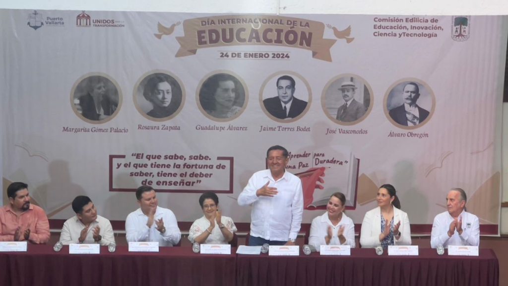 Puerto Vallarta conmemoró este 24 de enero el Día Internacional de la Educación, jornada que insta a pensar en la necesidad de garantizar el acceso a la educación de calidad para todos y a reflexionar sobre los retos y oportunidades que enfrentamos a nivel global en el ámbito educativo, con un programa que se llevó a cabo en el patio central de Palacio Municipal.