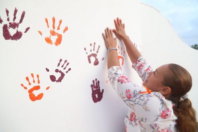Posteriormente a dicho ejercicio de reflexión, los vecinos presentes plasmaron sus manos con pintura, negra y naranja, en las paredes del Foro Cultural de la plaza en dicha colonia a manera de símbolo para detener la violencia contra las niñas y mujeres.