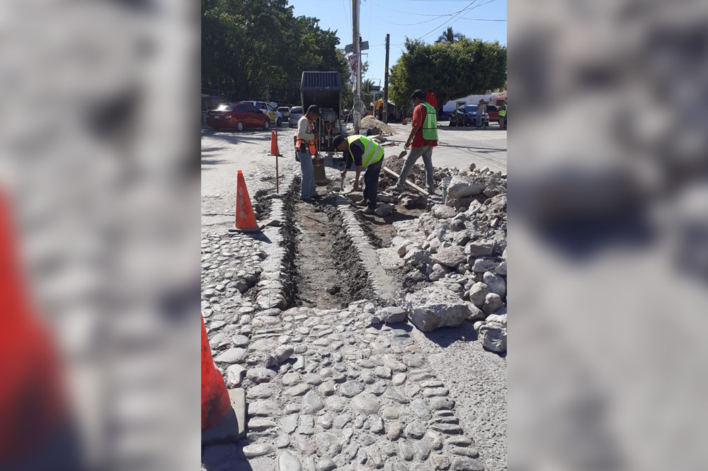 En la presente semana, cuadrillas de la dependencia a cargo de Oscar Castellón Rodríguez, realizan actividades en la avenida Francisco Medina Ascencio, con la reparación de adoquín en las áreas donde presenta mayor daño.