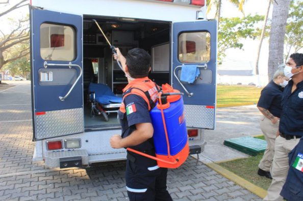 El compromiso del Presidente Municipal de Bahía de Banderas, doctor Jaime Cuevas Tello, de reforzar las acciones para hacer frente a la contingencia por el Coronavirus, sigue avanzando con la reciente capacitación que recibió el personal de la Unidad Municipal de Protección Civil y Bomberos en el protocolo de Sanitizacion de Ambulancias, vehículos y personal que traslade pacientes sospechosos o confirmados de COVID-19.