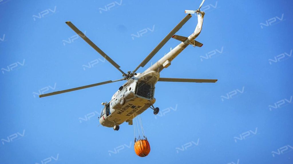 Por lo anterior, este Mando Naval desplegó a 64 elementos navales, entre Capitanes, Oficiales, Clases y Marinería, así como cinco vehículos y un helicóptero MI-17 de la Armada de México, con el fin de contribuir con las labores de sofocación de citado incendio.