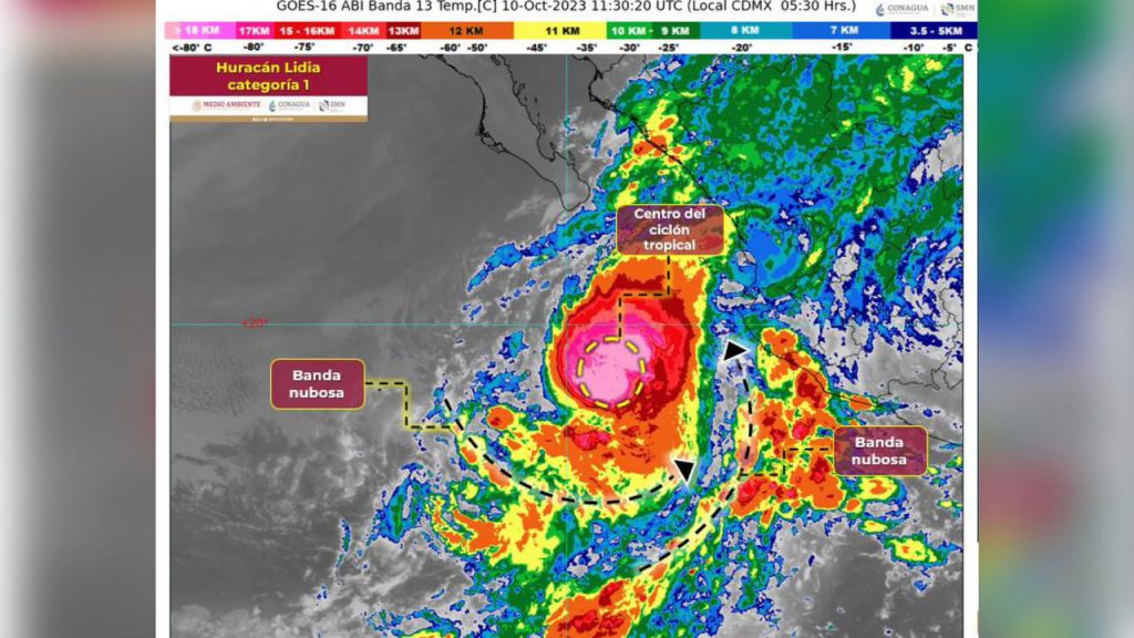 Lidia, ocasionará en las próximas horas, viento con rachas de 120 a 150 km/h y oleaje de 5 a 7 metros de altura en las costas de Nayarit y Jalisco.