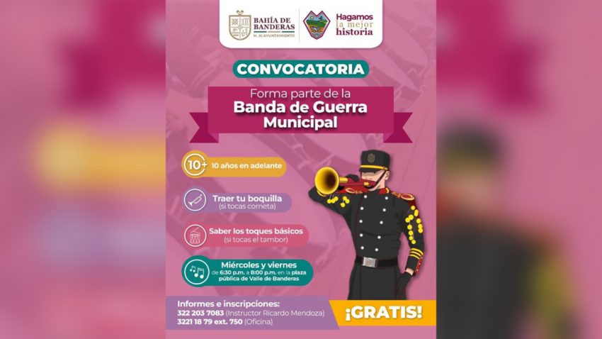 La Banda de Guerra estará presente en los eventos solemnes, y representará a Bahía de Banderas. Los requisitos son básicos: tener más de 10 años, saber los toques básicos, en el caso del tambor y traer boquilla en caso de la corneta; ensayarán todos los martes y jueves de 5:30 a 7:00 de la noche en la plaza de Valle de Banderas.