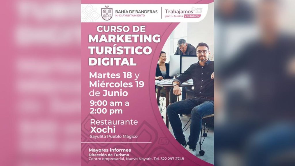 La Dirección de Turismo del Gobierno de Bahía de Banderas invita a la población del municipio a participar en un curso gratuito de Marketing Turístico Digital, que se realizará los días 18 y 19 de junio en Sayulita, específicamente en el restaurante Xochi.