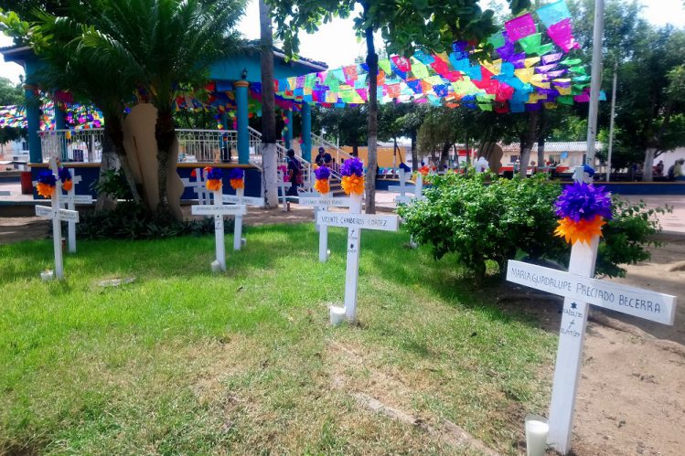 En esta ocasión en la plaza pública de San Vicente se aprovechó los jardines para colocar cruces con los nombres de seres queridos ya fallecidos de familias de esta comunidad.