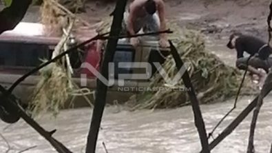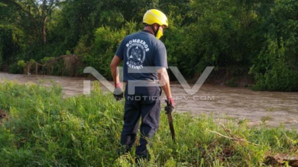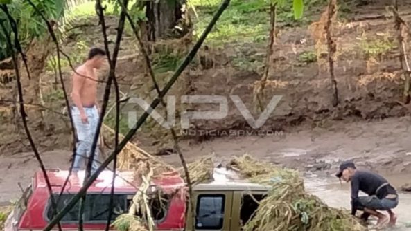 Durante la madrugada reportaron a los servicios de emergencias que un vehículo fue arrastrado por la corriente del río en el poblado de Lo de Marcos con personas a bordo.