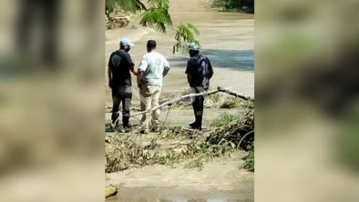 Salvador Enriquez, comandante de Protección Civil del Estado junto con los elementos a su mando se mantienen peinando la zona por la orilla del arroyo, esperando a que baje el nivel del agua para realizar un recorrido de búsqueda por el otro extremo del cauce.