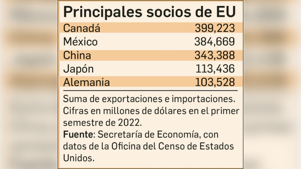 En su cuenta de Twitter la secretaria de Economía, Tatiana Clouthier, destacó las cifras al publicar: “México se mantuvo como el segundo socio comercial de EU en el primer semestre de 2022, con un intercambio de más de 384 mil millones de dólares. Una muestra del dinamismo de nuestra integración comercial”.