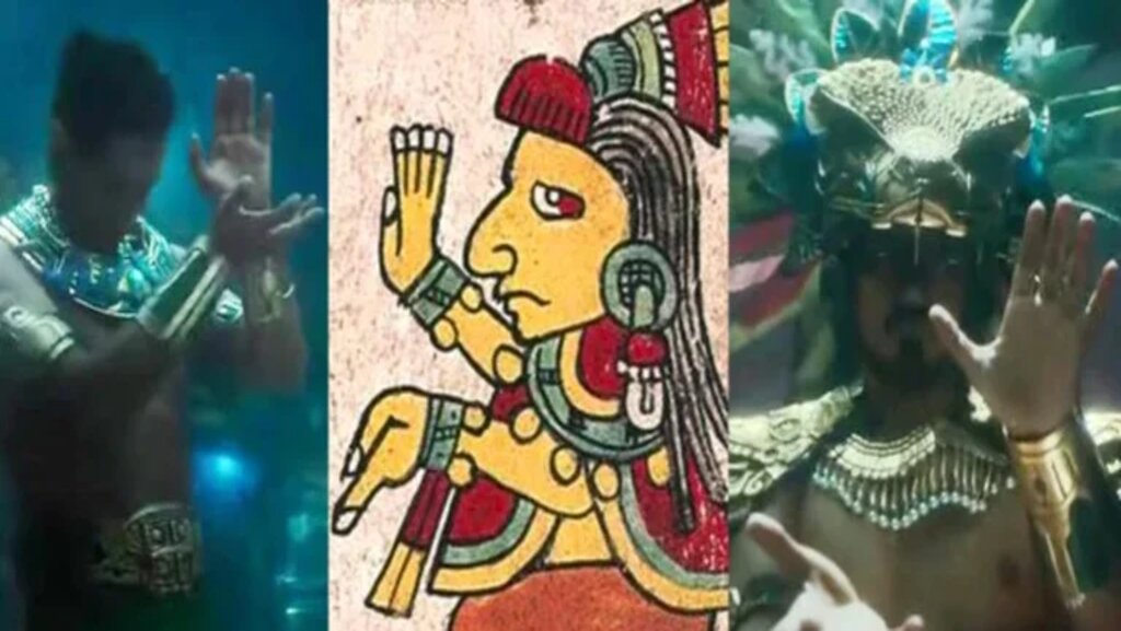 El pueblo serían los wakandios, una versión propia de la película, sin embargo, el Líik’ik Talokan no fue inventado nada más porque sí, pues este está relacionado con los códices prehispánicos Nutall, donde se puede ver a las personas haciendo el saludo. En el UCM tendría que ver con la puesta de sol.