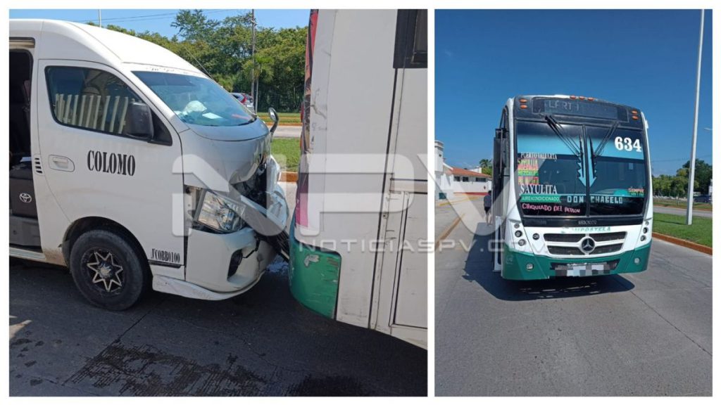 Un choque entre un taxi de Bahía de Banderas y un camión de la ruta Compostela Sayulita, se registró la mañana de este lunes sobre la avenida Francisco Medina Ascencio frente al ingreso al hospital Naval.
