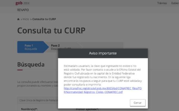 Además la dependencia afirmaba que la causa por la que las personas no han podido imprimir su CURP por esta vía, es la inconsistencia entre los datos de su acta de nacimiento y su clave.