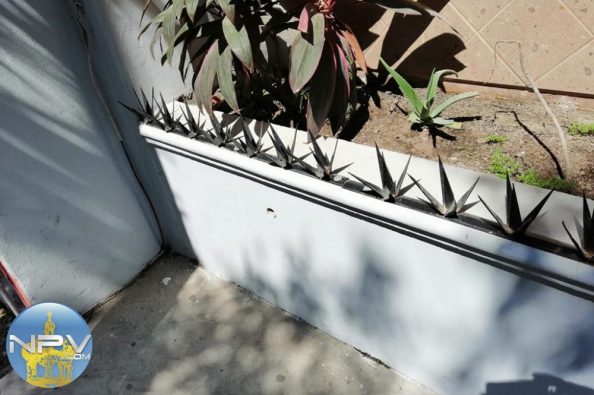 Son piñas, picos de metal colocados al borde de la jardinera de banqueta a una altura de al menos 70 centímetros del suelo, una niña al pasar se hirió su mano