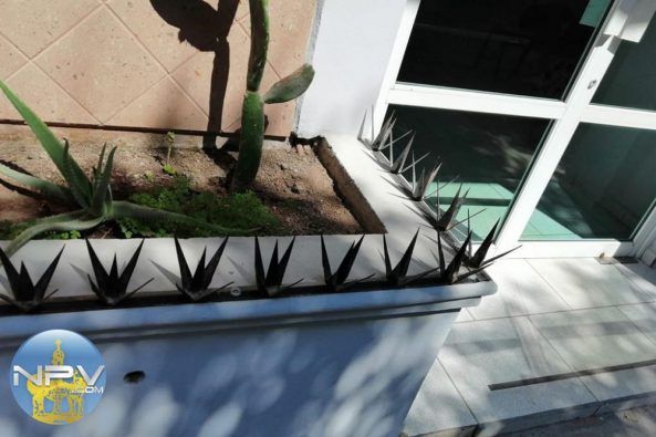 De gran peligro calificó un ciudadano la barra de protección de plantas que se colocó al borde de la jardinera de la banqueta que forma parte de la fachada de las oficinas del Registro Público de la Propiedad ubicada en la comunidad de Bucerías, Bahía de Banderas, Nayarit. La persona que nos envió el reporte fue testigo de como una niña al transitar por ahí le llamó la atención, paso su mano sobre esta protección y se cortó.