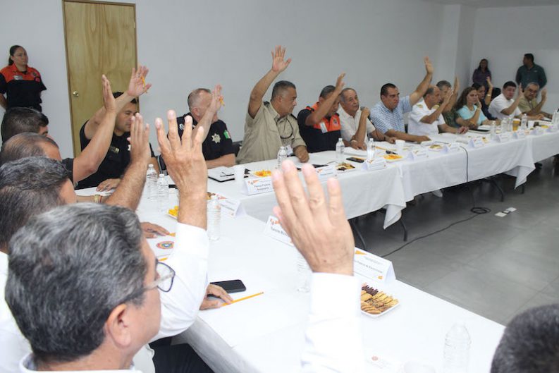 La mañana de este jueves, el Consejo Municipal de Protección Civil, integrado por autoridades de los tres niveles de gobierno, cámaras empresariales, el sector educativo y asociaciones, se declaró en sesión permanente para la Temporada de Lluvias y Ciclones Tropicales 2019, fortaleciendo así la coordinación entre sus integrantes para dar respuesta oportuna a la población en caso de un fenómeno hidrometeorológico.