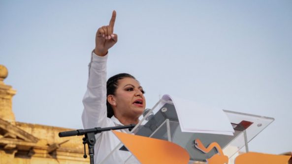 La candidata a la presidencia municipal fue una de las oradoras de la ‘Caminata por la Defensa de Jalisco’,realizada por simpatizantes, candidatos e integrantes de Movimiento Ciudadano
