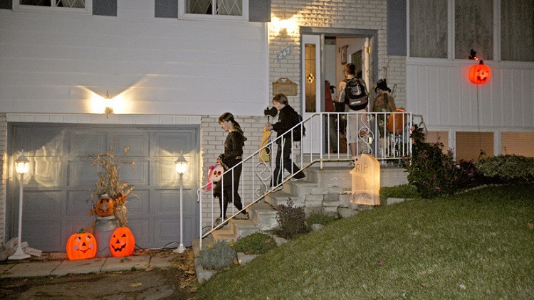 «¡No al ‘truco o trato’ en esta dirección!«, advierten los carteles, acompañados de dos señales de detención obligatoria. Durante la noche en que se celebra esta fiesta de origen pagano, el 31 de octubre, los niños tocan a las puertas de las casas de sus vecinos para pedirles dulces.