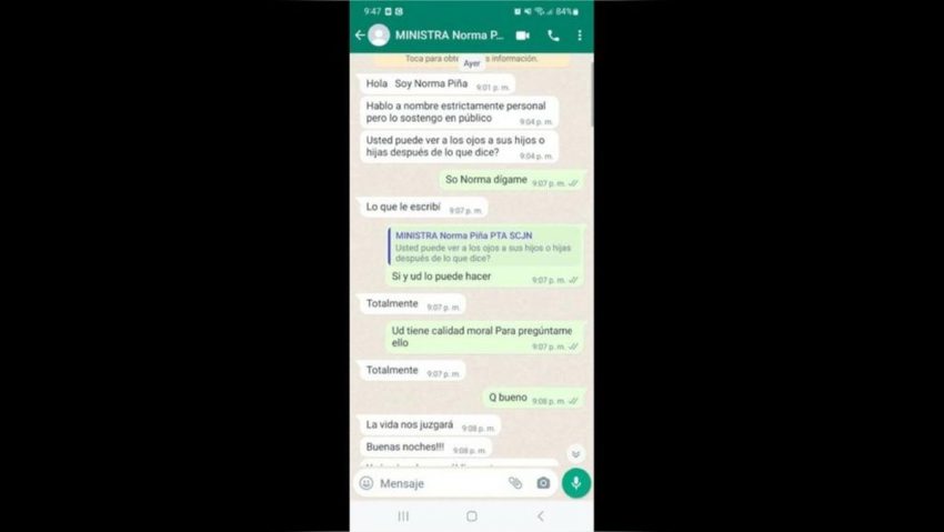 El senador poblano explicó que el martes pasado recibió por WhatsApp, a partir de las 9:01 de la noche, de un número telefónico supuestamente de Norma Piña, un conjunto de mensajes que estimó tenía el objetivo de intimidarlo.