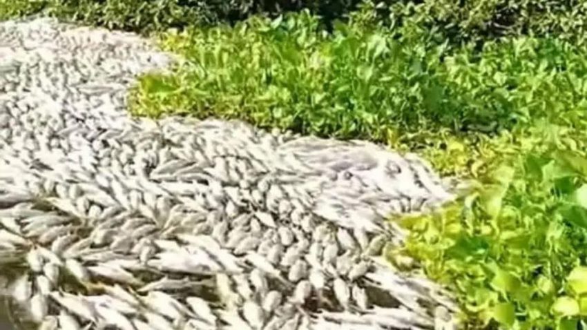 En un video que circuló en redes sociales,se pudo apreciar una gran cantidad de peces flotando sin vida en las aguas de la laguna.
