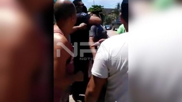 Argumentaron los quejosos en el lugar que este funcionario policial, luego de confundir al joven con otra persona, utilizó la fuerza bruta para someterlo sosteniéndolo del cuello con demasiada fuerza al punto de que lo estaba asfixiando, según manifestaron las personas civiles ahí presentes, quienes tuvieron que intervenir para evitar que el Supervisor de la Policía lo lesionara.