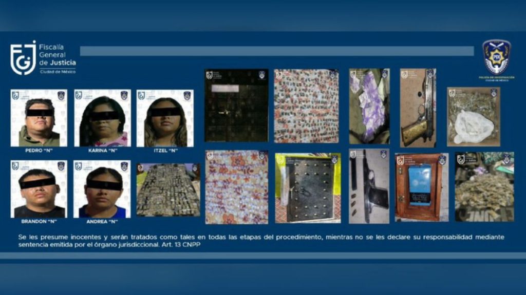 Pedro, Brandon, Karina, Itzel y Andrea N, de nacionalidad mexicana fueron detenidos en un primer inmueble, por su posible participación en el delito contra la salud, en su modalidad de narcomenudeo, asegurándoseles 290 bolsitas con presunta mariguana.