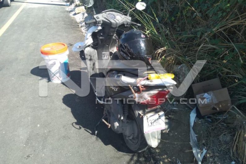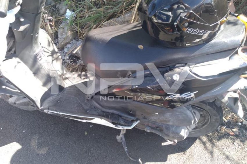 Vecino de San Vicente resultó con lesiones tras derrapar en una motoneta, frente a la tienda Chedraui, de Bucerías, quien fue auxiliado por Paramédicos de Protección Civil del Estado y llevado a recibir atención médica al IMSS de Mezcales.
