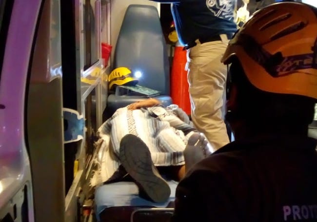 El personal de Protección Civil y Bomberos de Bahía de Banderas, luego de ser alertados del accidente se dirigieron al sitio indicado a bordo de la unidad PC-03, con dos paramédicos a bordo, quienes al arribar se percatan de que ahí se encontraba tirado un joven, quien presentaba lesiones delicadas, por lo que fue auxiliado por los elementos, quienes luego de brindarle los primeros auxilios, lo subieron a una camilla y lo abordaron a la ambulancia en la que lo llevaron a recibir atención médica a un hospital.