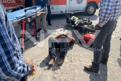 Vecino de El Porvenir, resultó con lesiones luego de derrapar en la motocicleta que conducía, esto luego de que se le atravesó en su camino una camioneta que se dio a la fuga, siendo auxiliado el mismo por paramédicos de Protección Civil, quienes lo trasladaron a recibir atención médica al hospital de San Pancho.