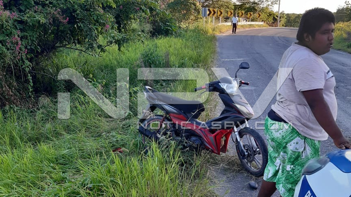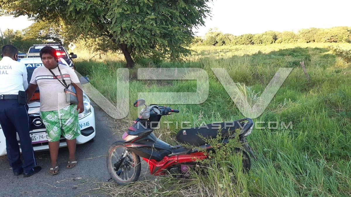 Fue a la altura de la curva del rancho «La Gringa» donde el motociclista perdió el control y se salió de la carpeta asfáltica quien milagrosamente resultó ileso