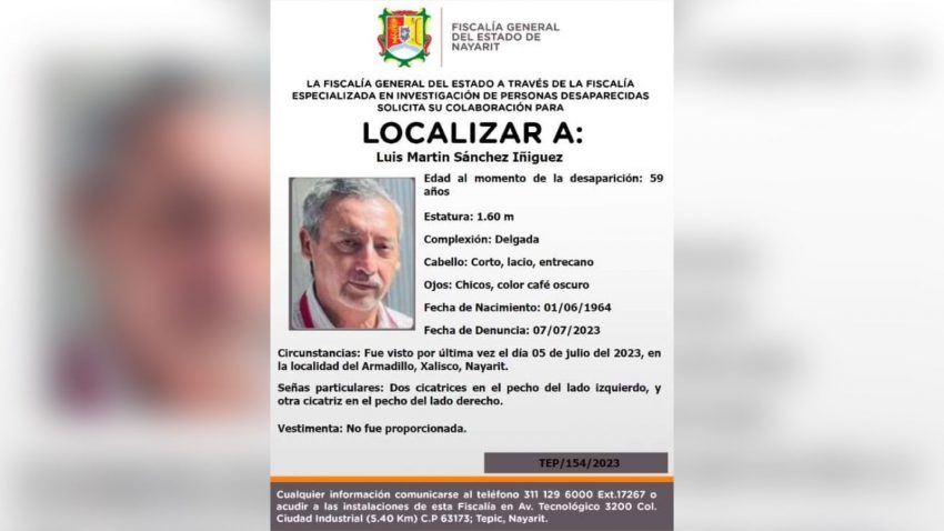 Esta noche la Fiscalia General de Nayarit emitió una ficha de búsqueda para localizar a Luis Martín Sánchez Íñiguez, corresponsal de ‘La Jornada’ en Tepic, Nayarit, quien se encuentra desaparecido desde la noche del miércoles pasado, según la denuncia presentada por su esposa, Cecilia López Aguilar, ante la Fiscalía General del Estado.
