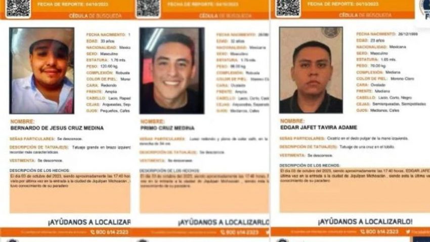 Los tres jóvenes viajaban a bordo de una camioneta color negro, marca JAC Frison T8, modelo 2022, y de acuerdo con las fichas de búsqueda emitidas por la Fiscalía General de Justicia de Michoacán (FGE), fueron vistos por última vez a las 17:40 horas del 3 de octubre, en la entrada de la ciudad de Jiquilpan.