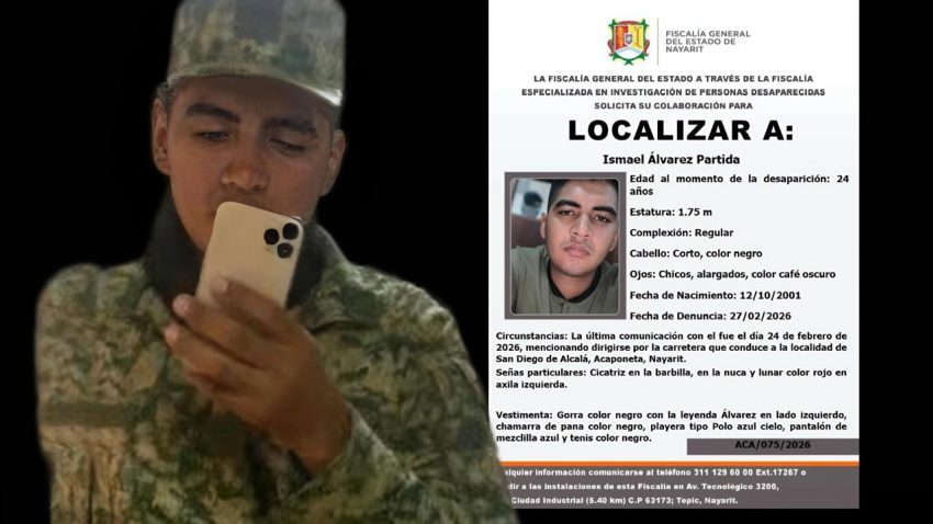 La Fiscalía General del Estado de Nayarit activó los protocolos de búsqueda tras el reporte de desaparición de Ismael Álvarez Partida, un joven de 24 años perteneciente al Ejército Mexicano. Según los primeros informes, Ismael fue visto por última vez el pasado 24 de febrero cuando circulaba por la carretera que conduce a la localidad de San Diego de Alcalá, en el municipio de Acaponeta, tras concluir su turno de trabajo.