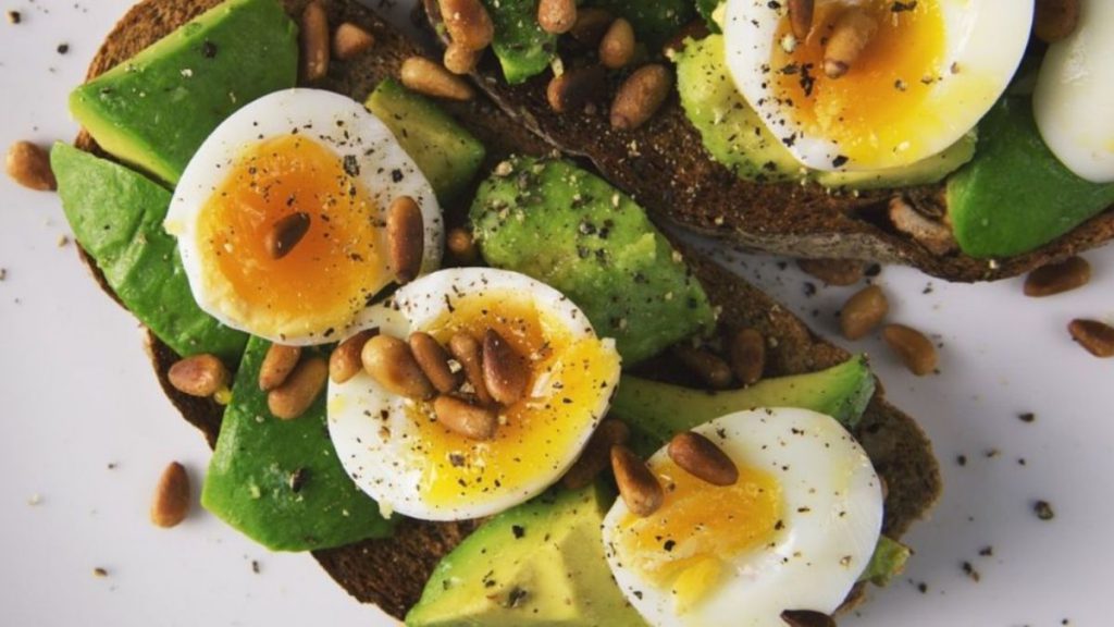 1. Toast de aguacate, huevo duro y jitomate: lo único que necesitas es contar con el plan integral de tu preferencia, puede ser uno sin gluten. Utiliza dos rebanadas de pan, las cuales debes tostar previamente. Posteriormente debes untarle una buena base de aguacate y encima colocarle un huevo duro partido en rodajas, así com jitomate finamente picado. Es una excelente mezcla de proteínas y grasas saludables. Le puedes añadir un poco de pimienta y sal.