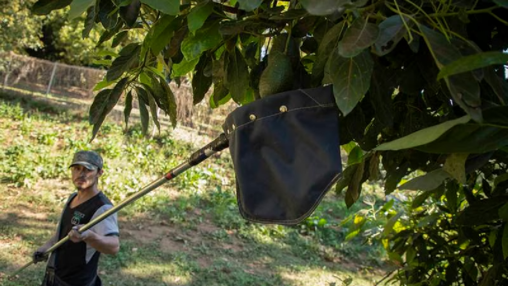 El productor José Evaristo Valencia está contento de no tener que preocuparse de si sus aguacates cuidadosamente cuidados llegarán a la planta de empacado. Esas plantas dependen de los acuerdos que han hecho con los huertos locales para cumplir con los envíos prometidos, y los aguacates robados pueden significar perder clientes.