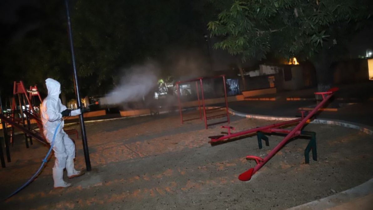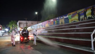 Servicios Públicos Municipales es la dependencia responsable de rociar con desinfectante las plazas públicas de distintas localidades de Bahía de Banderas.
