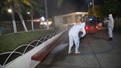 Bahía de Banderas, Nayarit, 17 de enero de 2022.- Dado al aumento de casos de COVID-19, que han presentado un alza considerable en Bahía de Banderas y en el resto del país, la presidenta municipal Mirtha Villalvazo dio instrucciones para sanitizar las plazas públicas.