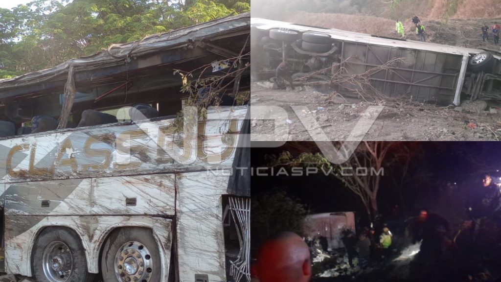 La noche del sábado 29 de abril del 2023, un camión de turismo volcó en la carretera federal 200, a la altura de Compostela, lo que dejó un saldo de víctimas mortales y lesionados.