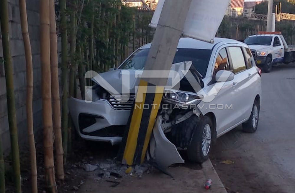 Fuerte accidente se registró la mañana de este viernes, frente al fraccionamiento Villanova en Bahía de Banderas, en donde se vio involucrada una camioneta marca Suzuki, que se estrelló contra un poste de Comisión Federal de Electricidad, al cual le causó daños.