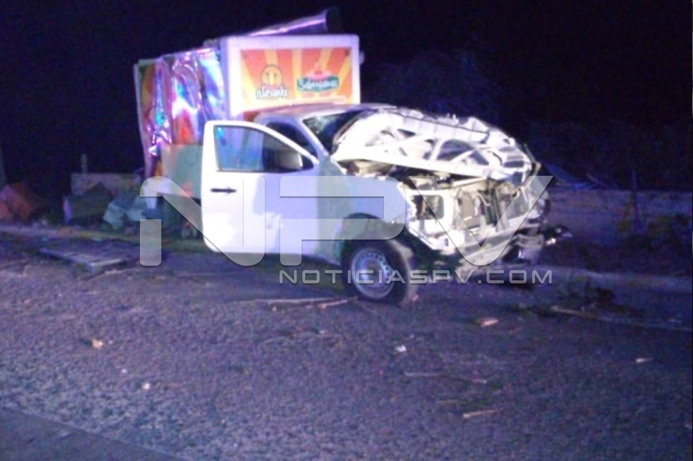 Fuerte accidente se registró frente a la Mega comercial de Bucerías, en la zona de Flamingos, donde el empleado de un negocio de venta de tostadas, estrelló la camioneta que conducía, contra varios objetos fijos, donde afortunadamente solo resultó con lesiones menores que no ponen en riesgo su vida, aunque sí hubo cuantiosos daños materiales.