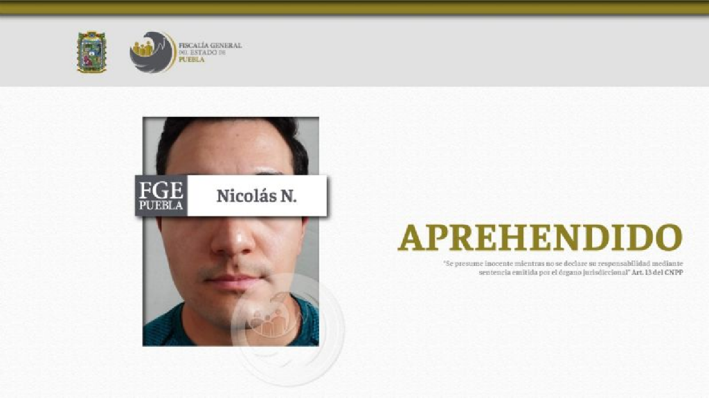 Este jueves, la FGEP informó que Nicolás «N» fue detenido con base en la denuncia que presentó la familia de una menor a la que presuntamente el universitario le hizo tocamientos lascivos.